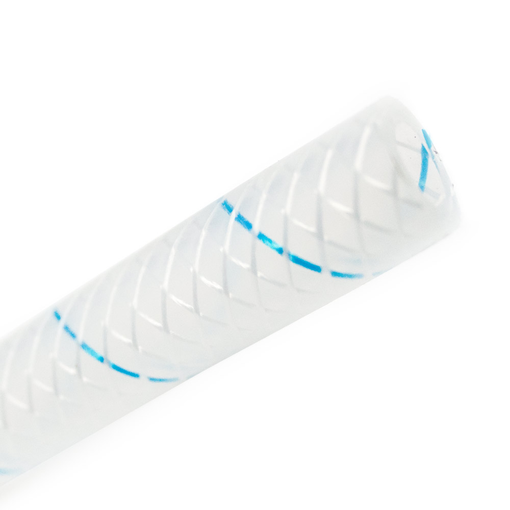 3/8" ID braided hose is high strength polyester fiber reinforced polyethylene tubing. Flexible braided tubing recommended for a wide variety of beverages including soft drinks, fruit juices, and flavored teas. Not recommended for hot sanitizing or where working pressures exceed 200 psi.